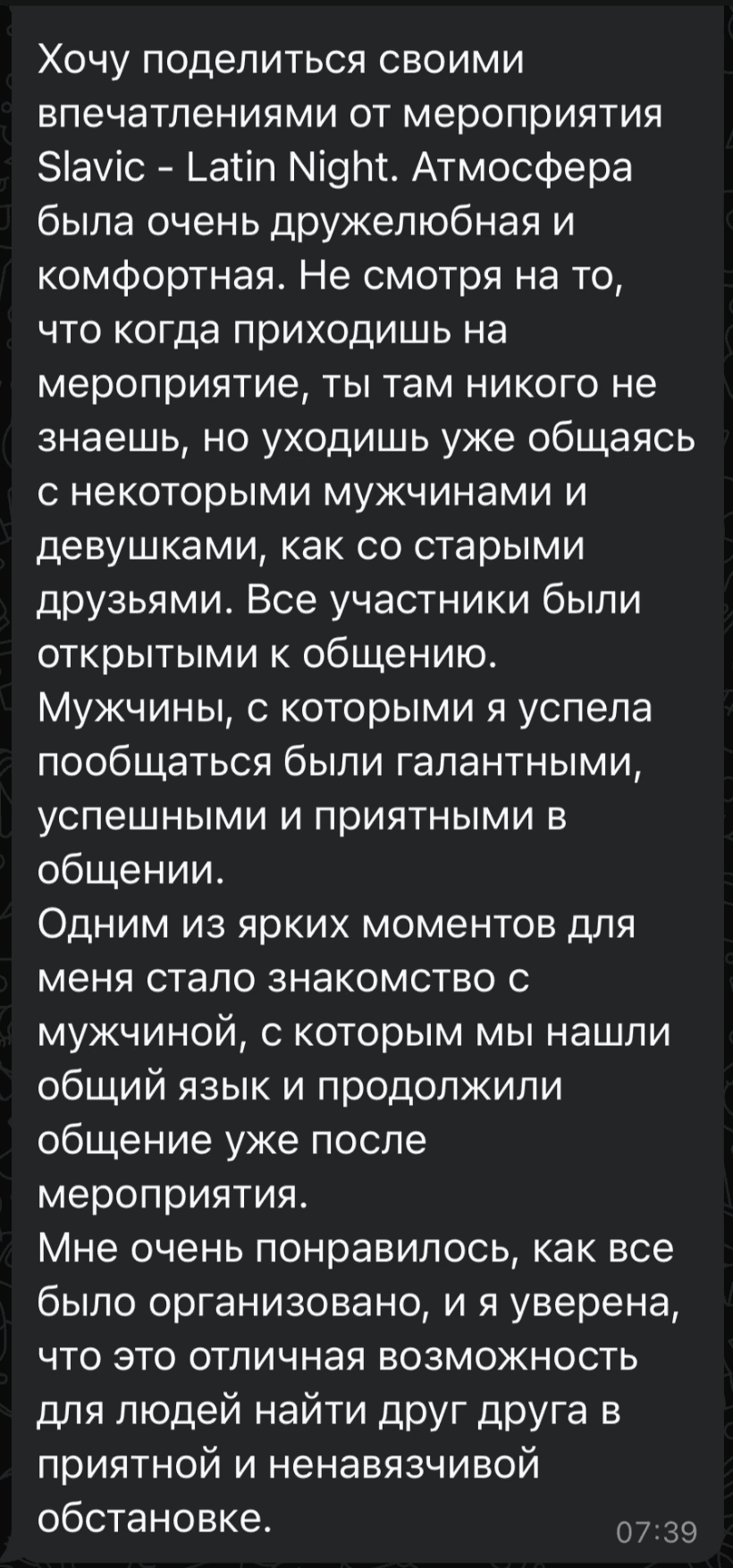 Это будет эксклюзивное событие, на котором вас ждут 30 успешных и привлекательных мужчин, ищущих серьезные отношения. Некоторые из них прилетят из других городов и даже из США, чтобы познакомиться с вами.